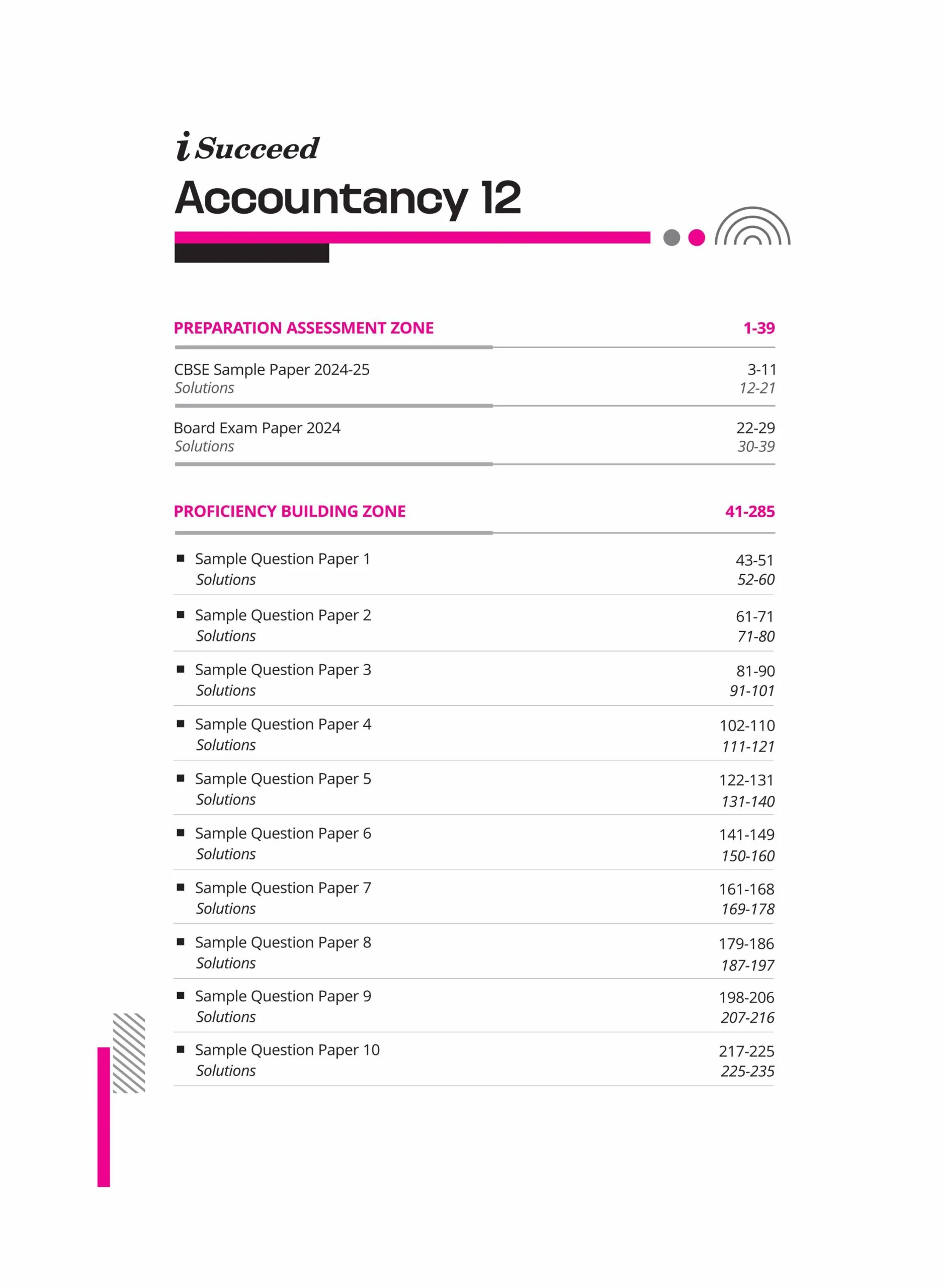 • i-Succeed Sample Question Papers Accountancy Class 12th – The entire book is divided into 3 zones: Preparation Assessment Zone, Proficiency Building Zone, Knowledge Booster Zone