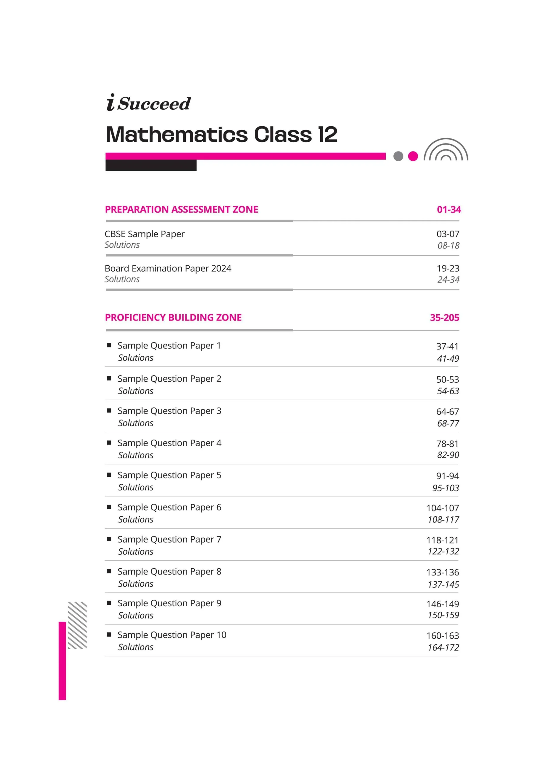 • i-Succeed 15 Sample Question Papers Mathematics Class 12th – Entire book is divided into 3 zones: Preparation Assessment Zone, Proficiency Building Zone, Knowledge Booster Zone