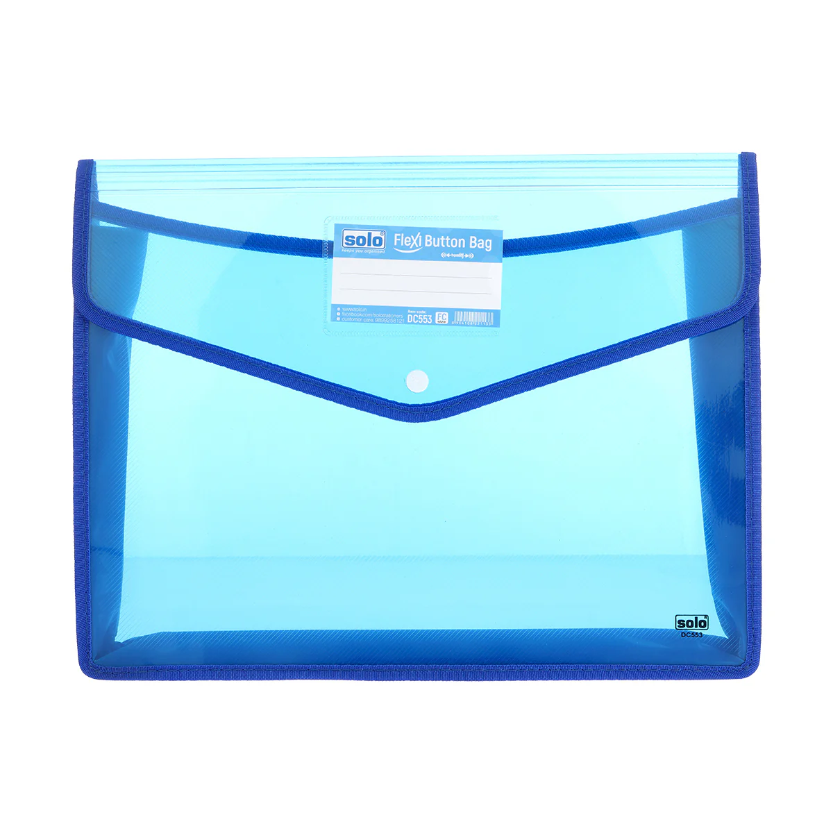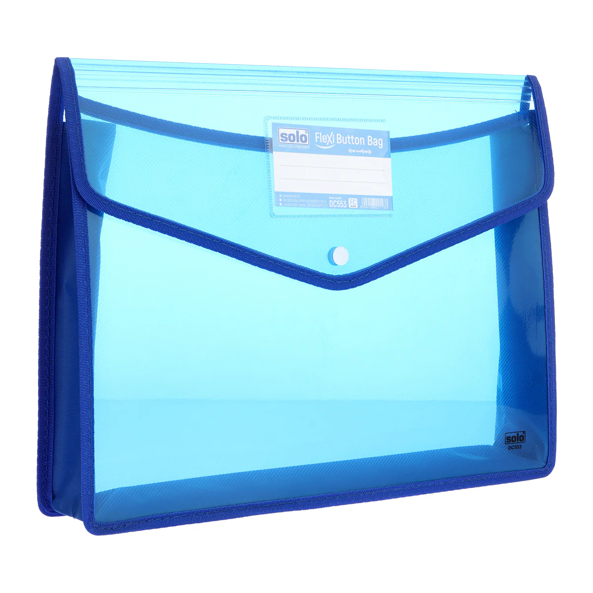 Made from high-quality, flexible polypropylene, this button-closure bag holds Fullscape (FC) size papers, making it ideal for certificates, office files, homework, legal papers, and bills. The snap-button flap ensures your documents stay safe from dust, spills, and wear while allowing quick access when needed.