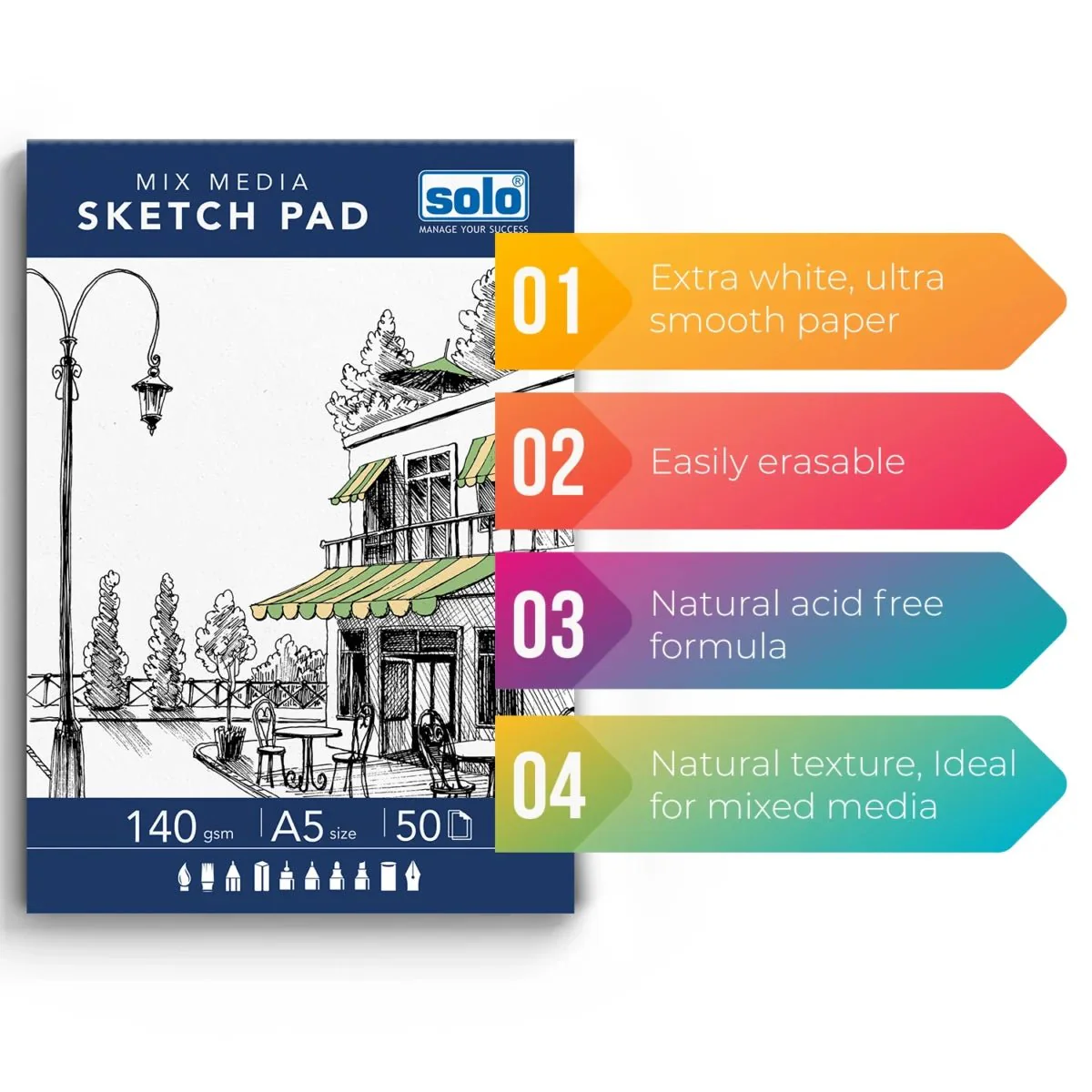 Discover the perfect creative companion with the SOLO Mixed Media Sketchpad – A5 Size (Portrait). Whether you’re a student, aspiring artist, or professional illustrator, this portable and versatile sketchpad is designed to support a wide range of artistic expressions.