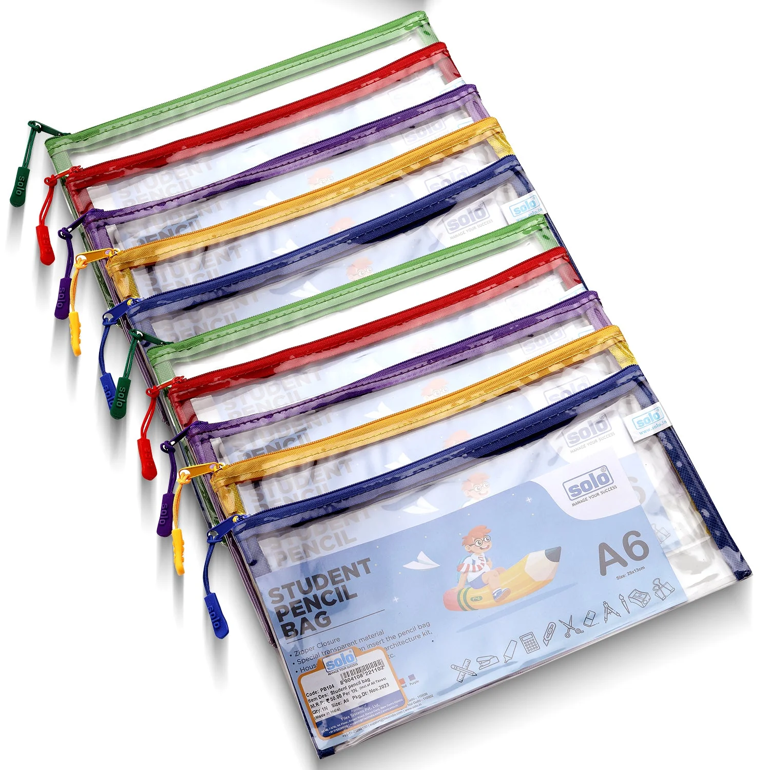 Equip students with the perfect everyday stationery solution — the SOLO Student Pencil Bag PB104. This pack of 10 transparent pencil pouches is ideal for schools, coaching centers, and bulk stationery buyers looking for durable, affordable, and functional storage options.