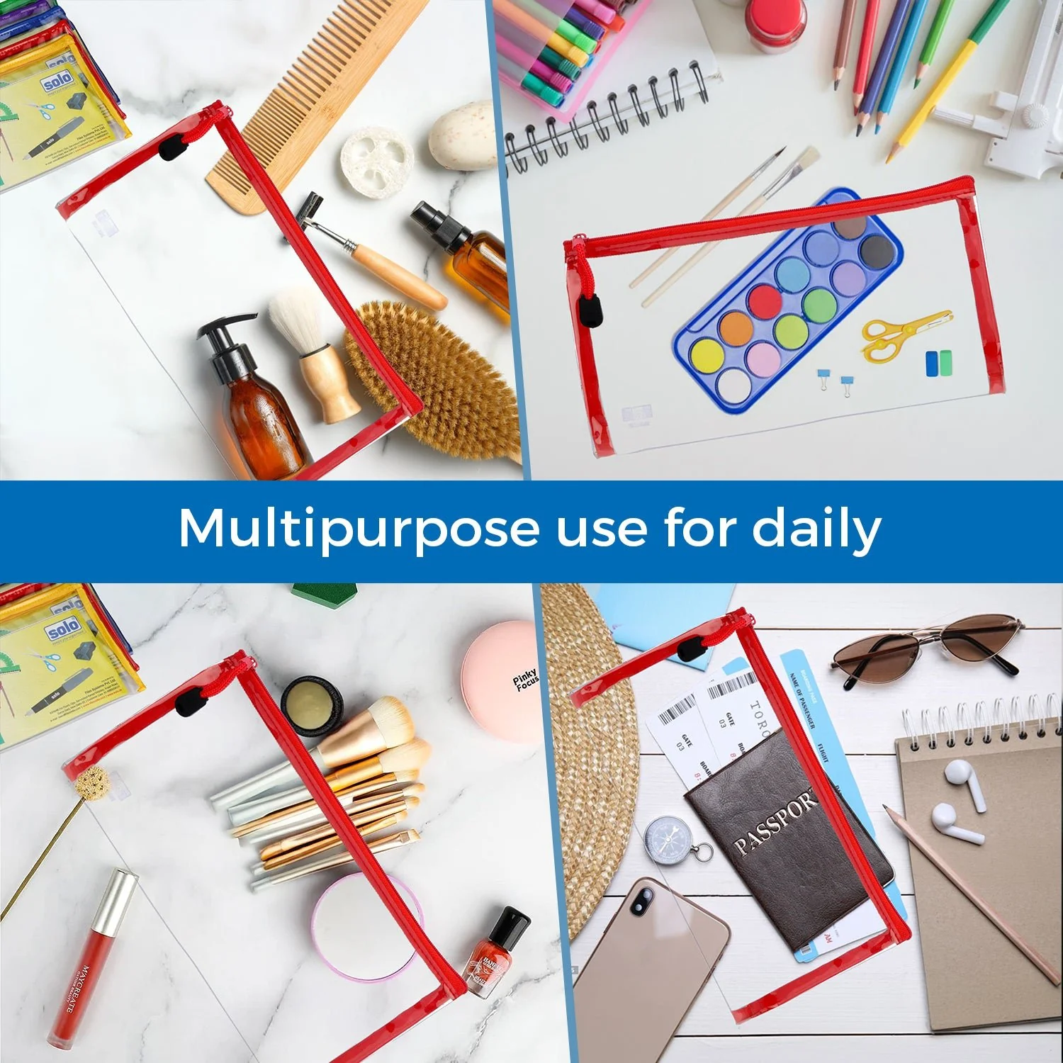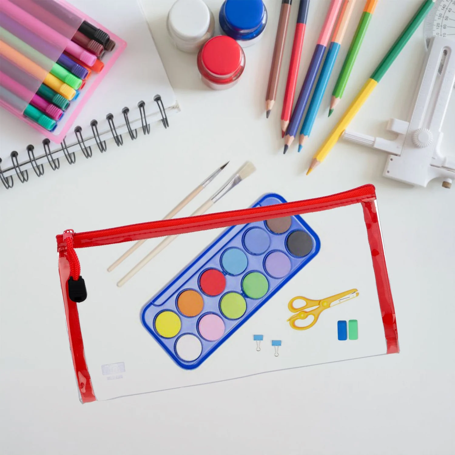 Each pencil bag is made from high-quality transparent plastic with a smooth zipper closure, making it easy for students to view and access their pens, pencils, erasers, rulers, and other small supplies. Its lightweight and compact design ensures it fits perfectly in school bags without adding bulk.