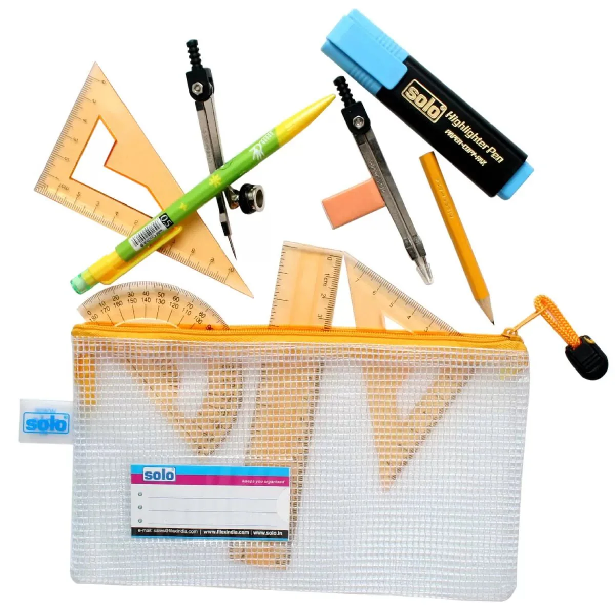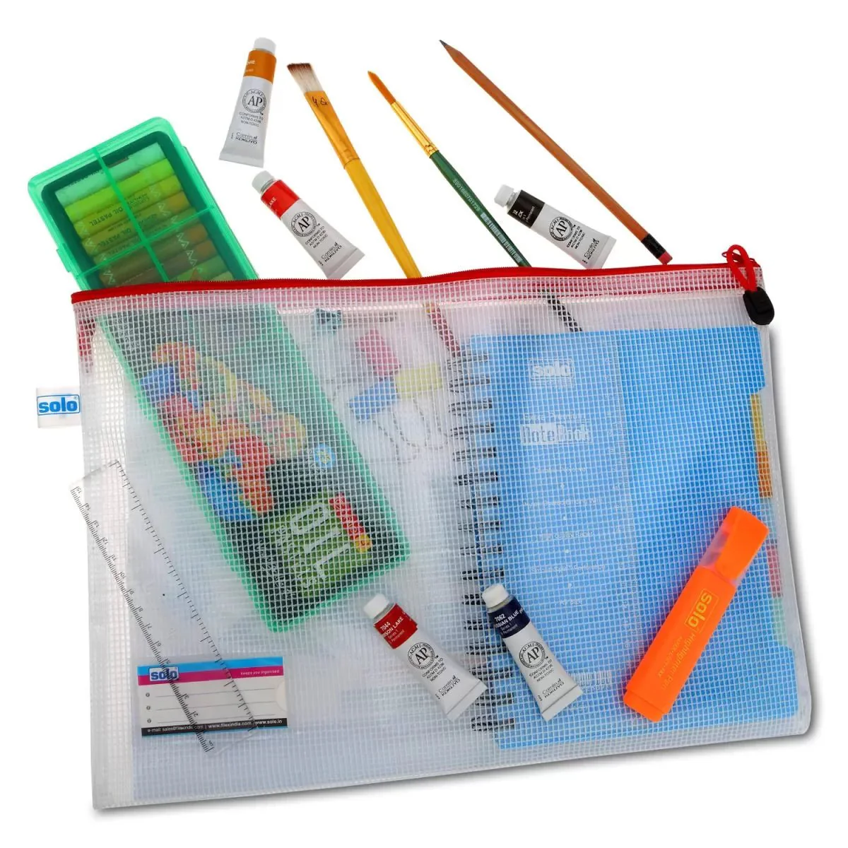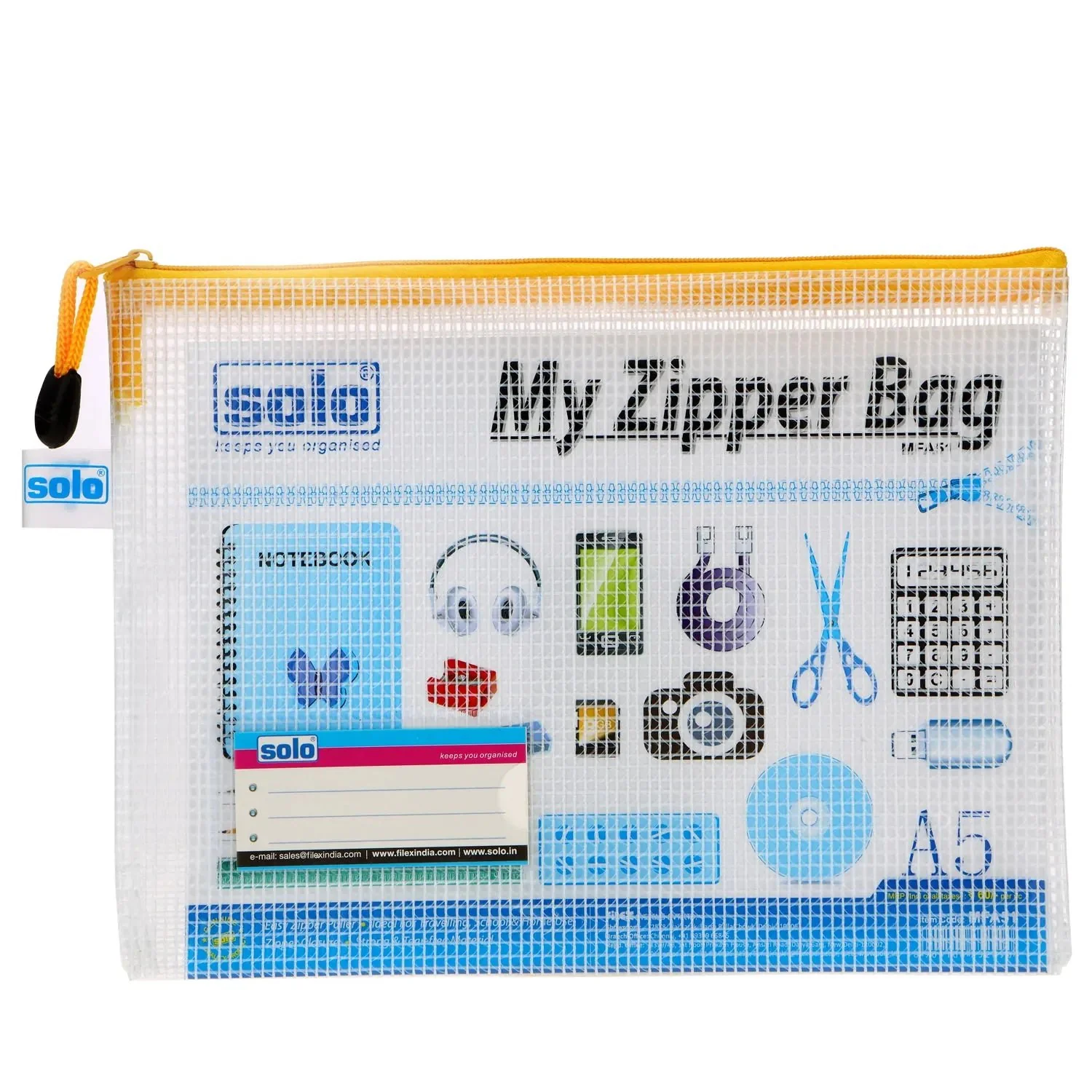 Made from durable mesh fabric with a strong zipper, these transparent bags offer both visibility and protection for your contents. Whether you’re storing notes, bills, receipts, pens, small gadgets, or accessories, SOLO zipper bags make organization simple and stylish.